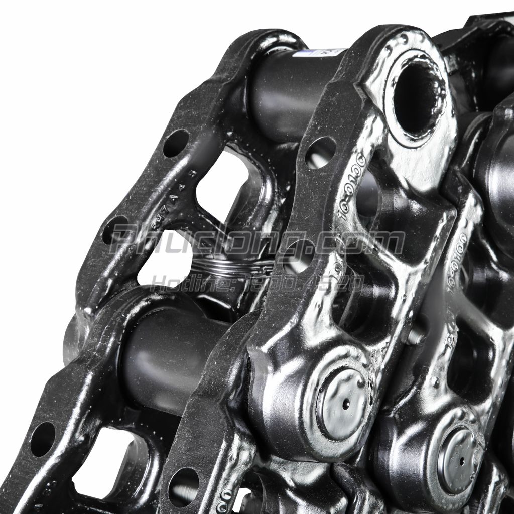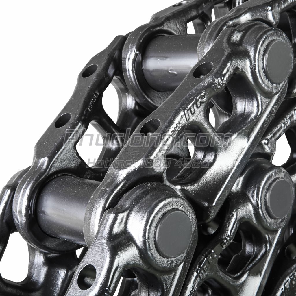 - Bề mặt bạc xích, má xích được tăng cường phụ gia, giúp gia tăng độ cứng, tuổi thọ và khả năng chịu mài mòn, phù hợp với điều kiện khai thác khoáng sản, công nghiệp nặng.