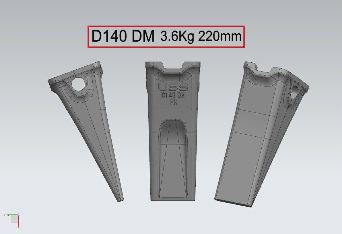 - Răng gầu thiết kế gia tăng chiều dài và chiều dày, tăng khả năng thâm nhập đất đá, nâng cao độ bền