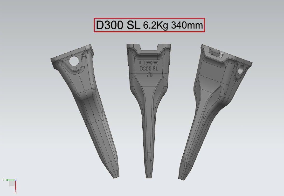 - Răng gầu thiết kế gia tăng chiều dài và chiều dày, tăng khả năng thâm nhập đất đá, nâng cao độ bền