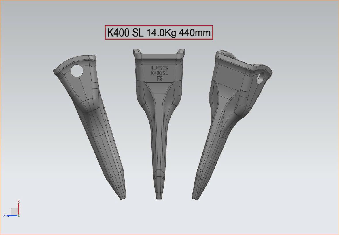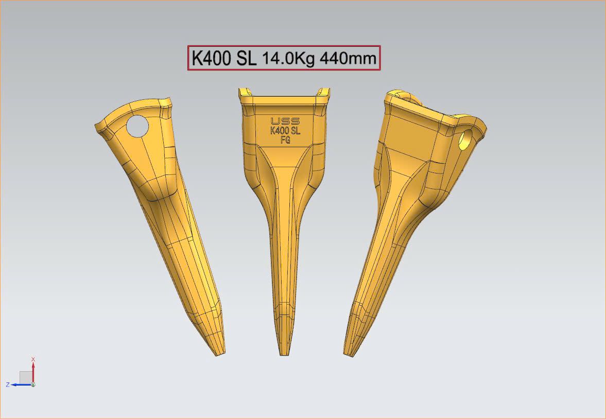 - Răng gầu thiết kế gia tăng chiều dài và chiều dày, tăng khả năng thâm nhập đất đá, nâng cao độ bền
